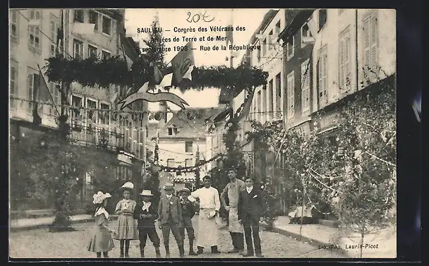 AK Saulieu, Congrès des Vétérans des Armées de Terre et de Mer 1906, Rue de la République