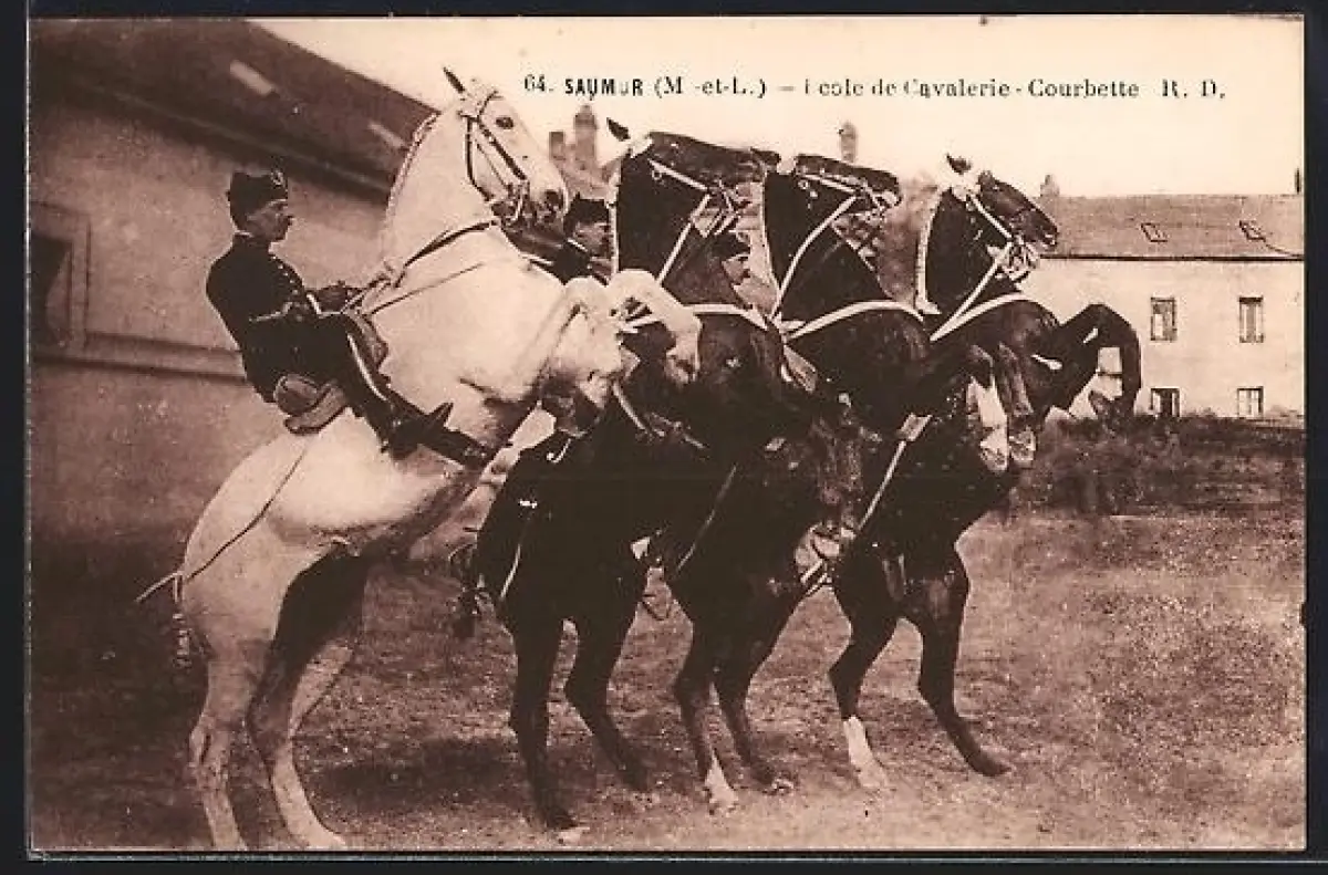 AK Saumur /M.-et-L., école de cavalerie-Courbette R. D