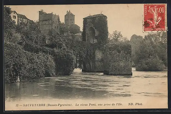 AK Sauveterre, Le vieux Pont, vue prise de l`Ile