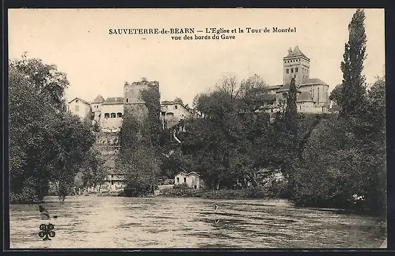 AK Sauveterre-de-Béarn, L`Eglise et la Tour de Monrèal vue des bords du Gave