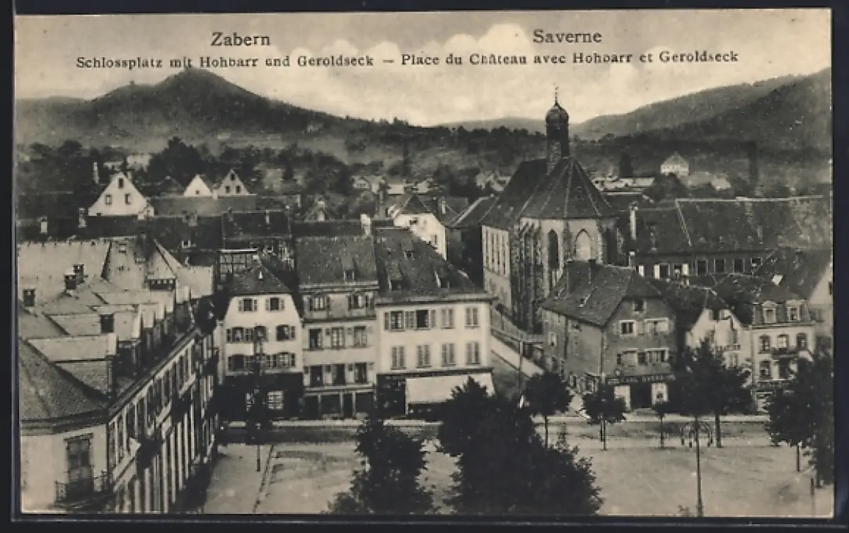 AK Saverne, Place du Château avec Hohbarr et Geroldseck