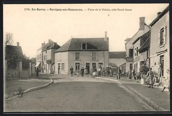AK Savigny-en-Sancerre, Place de la Mairie côté Nord Ouest