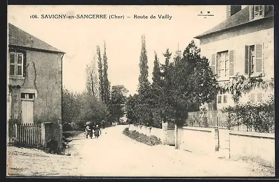 AK Savigny-en-Sancerre, Route de Vailly avec des passants sur le chemin