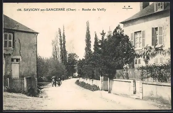 AK Savigny-en-Sancerre, Route de Vailly avec promeneurs sur le chemin