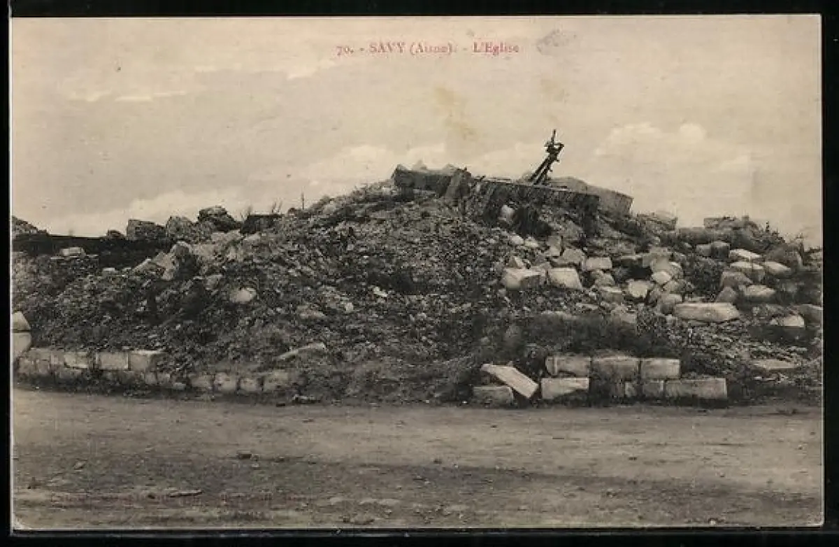 AK Savy /Aisne, L`Église en ruines après la destruction