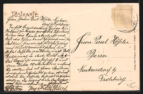 alte Ansichtskarte, gelaufen, Briefmarke entfernt, Bugspur oben li., guter Zustand