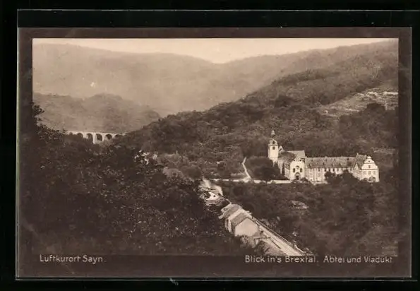 AK Sayn, Blick ins Brextal, Abtei und Viadukt