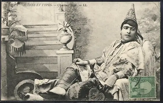 AK Scènes et Types, Chanteuse juive, jüdische Sängerin in traditioneller Kleidung