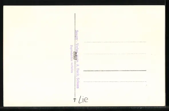 Personenbezogene Daten auf der Rückseite der Karte wurden durch blauen Textmarker unkenntlich gemacht. Die blauen Stellen sind auf die Vorderseite durchgeweicht und wirken sich negativ auf das Postkartenfoto aus