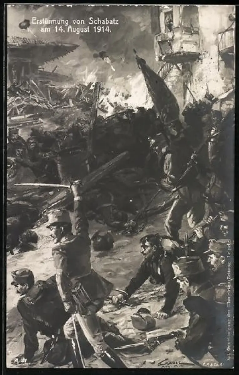 AK Schabatz / Sabac, Erstürmung am 14. August 1914