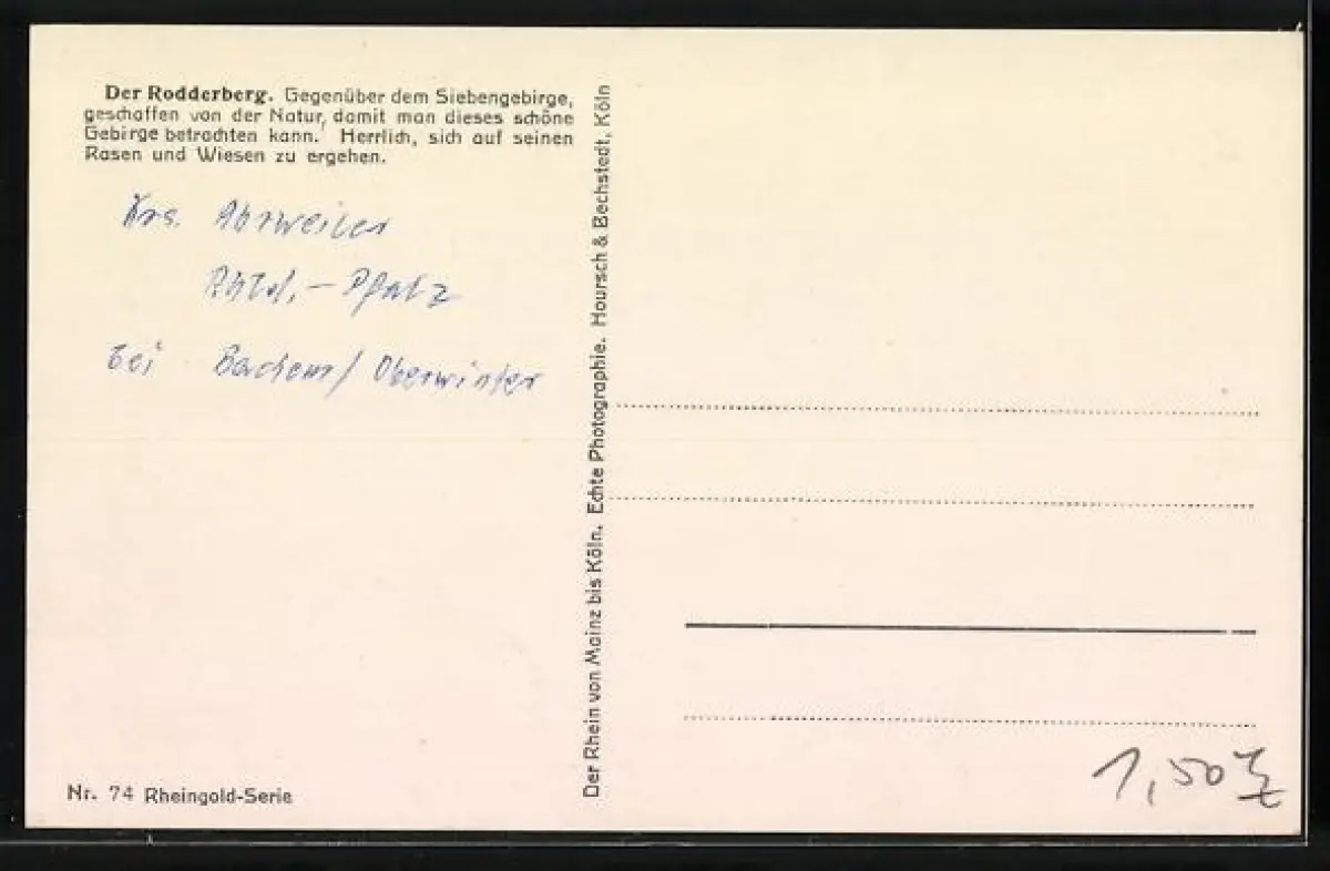 Personenbezogene Daten auf der Rückseite der Karte wurden durch blauen Textmarker unkenntlich gemacht. Die blauen Stellen sind auf die Vorderseite durchgeweicht und wirken sich negativ auf das Postkartenfoto aus