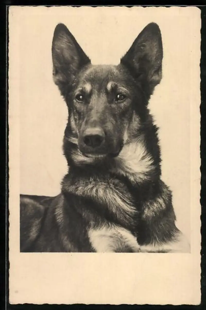 AK Schäferhund hat aufmerksam die Ohren aufgestellt