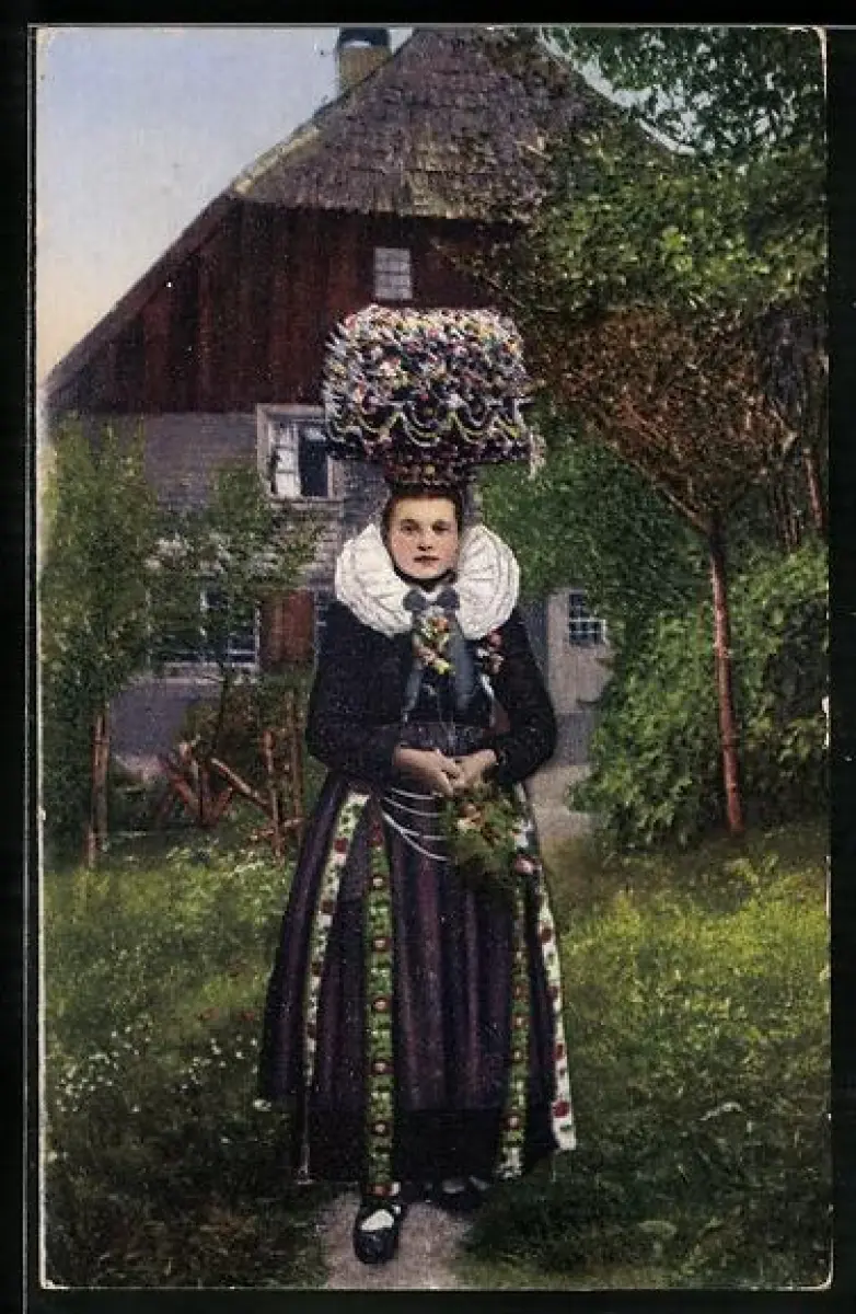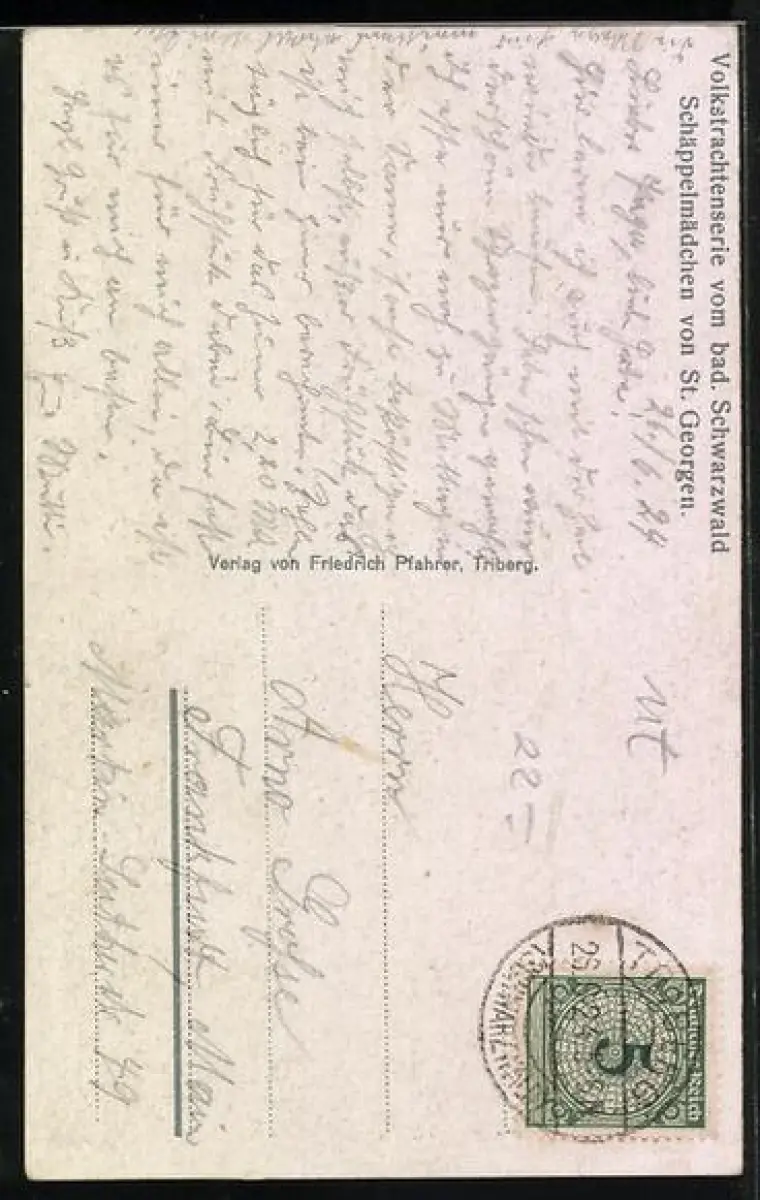 AK Schäppelmädchen von St. Georgen in hübscher Schwarzwälder Tracht