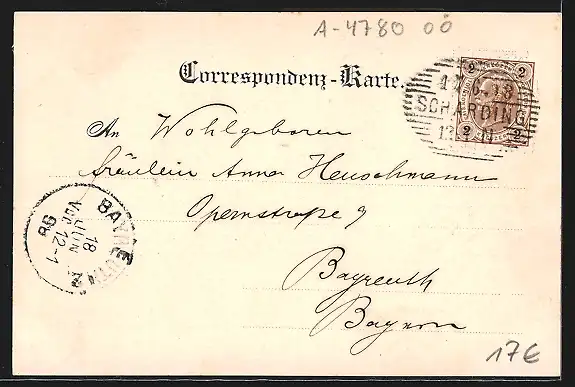 alte Ansichtskarte, gelaufen 1898, guter Zustand