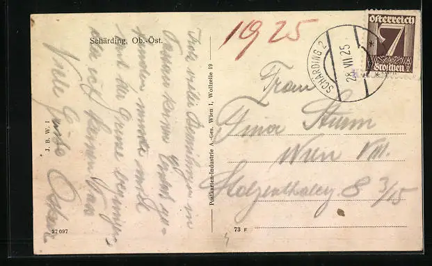 gelaufen 1925, rückseitig Klebe- und Papierreste, guter Zustand