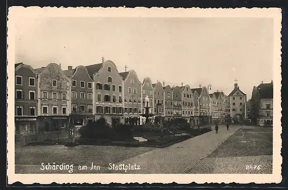 AK Schärding am Inn, Stadtplatz mit Brunnen