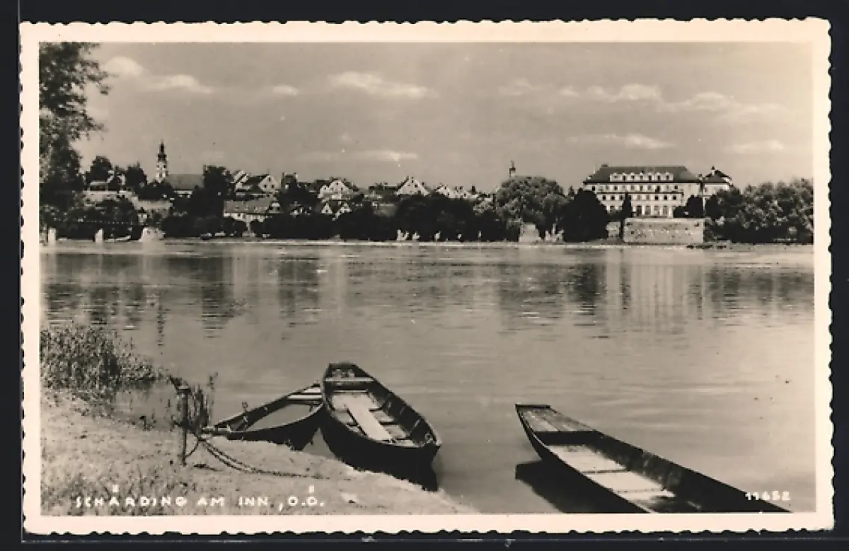 AK Schärding am Inn, Uferpartie mit Booten