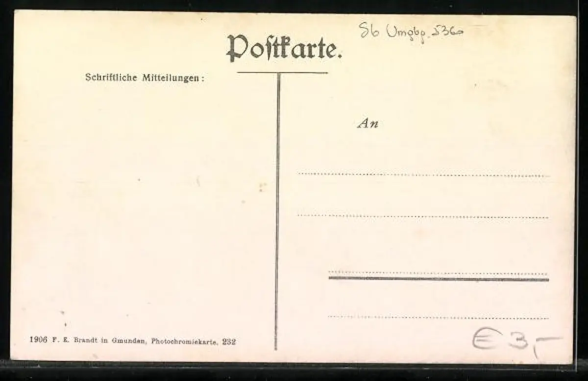 Personenbezogene Daten auf der Rückseite der Karte wurden durch blauen Textmarker unkenntlich gemacht. Die blauen Stellen sind auf die Vorderseite durchgeweicht und wirken sich negativ auf das Postkartenfoto aus