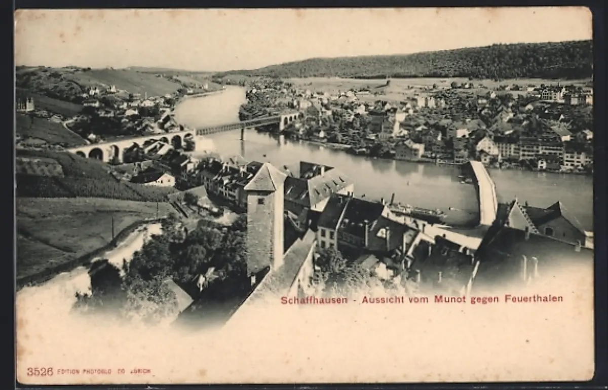 AK Schaffhausen, Aussicht vom Munot gegen Feuerthalen