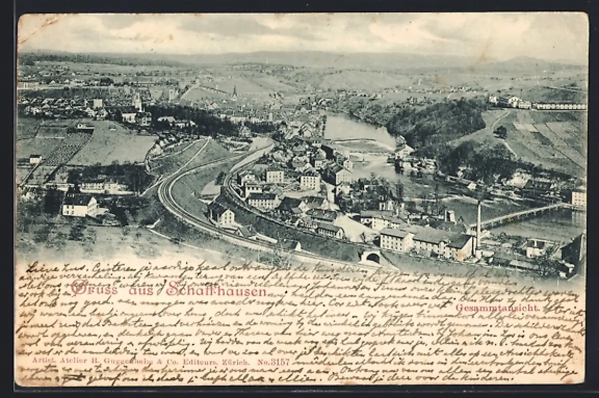 AK Schaffhausen, Gesamtansicht mit Umgebung aus der Vogelschau