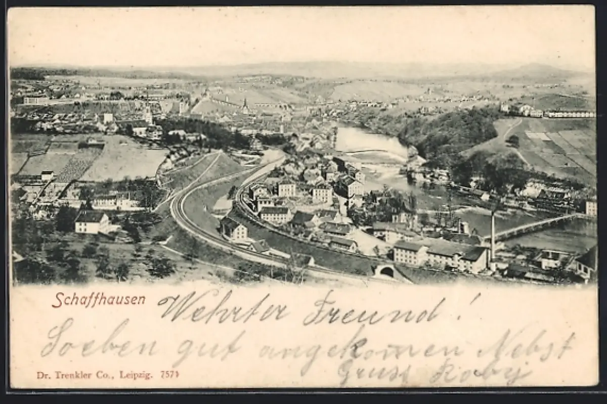 AK Schaffhausen, Gesamtansicht mit Umgebung aus der Vogelschau
