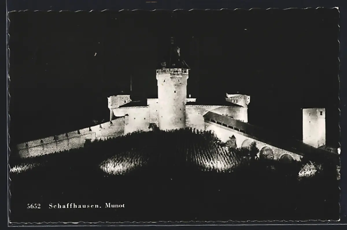 AK Schaffhausen, Munot-Castell bei nächtlicher Beleuchtung