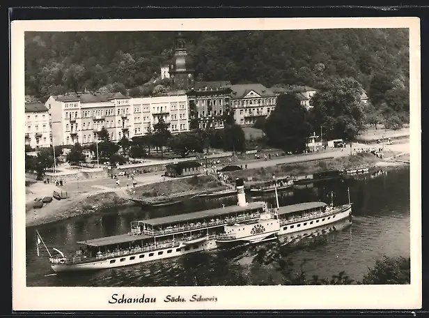 AK Schandau /Sächs. Schweiz, Dampfer Dresden auf der Elbe