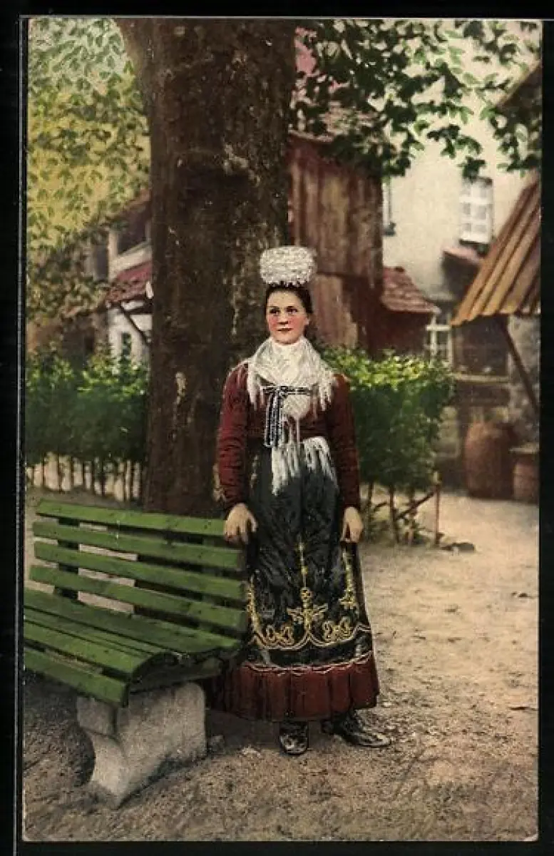 AK Schapbach, Mädchen im Hochzeitsschmuck, Schwarzwälder Tracht