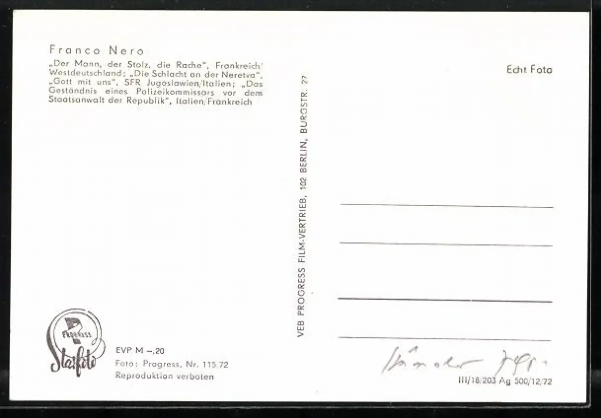 AK Schauspieler Franco Nero in dem Film Der Mann, der Stolz, die Rache