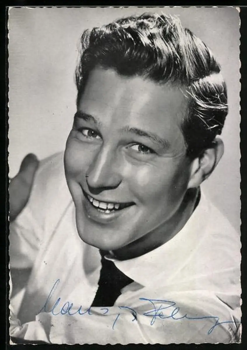 AK Schauspieler Hansjörg Felmy in die Kamera lächelnd, Autograph