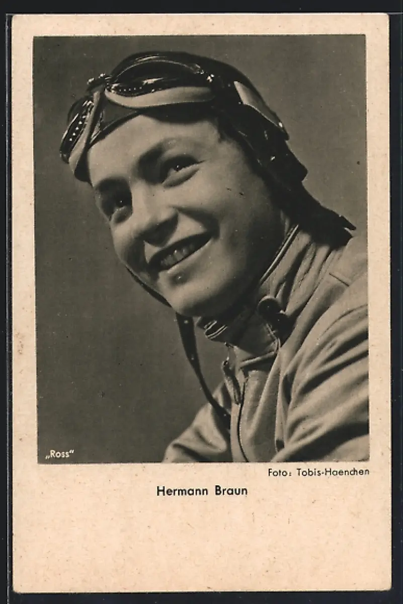 AK Schauspieler Hermann Braun lächelnd mit Fliegerbrille porträtiert