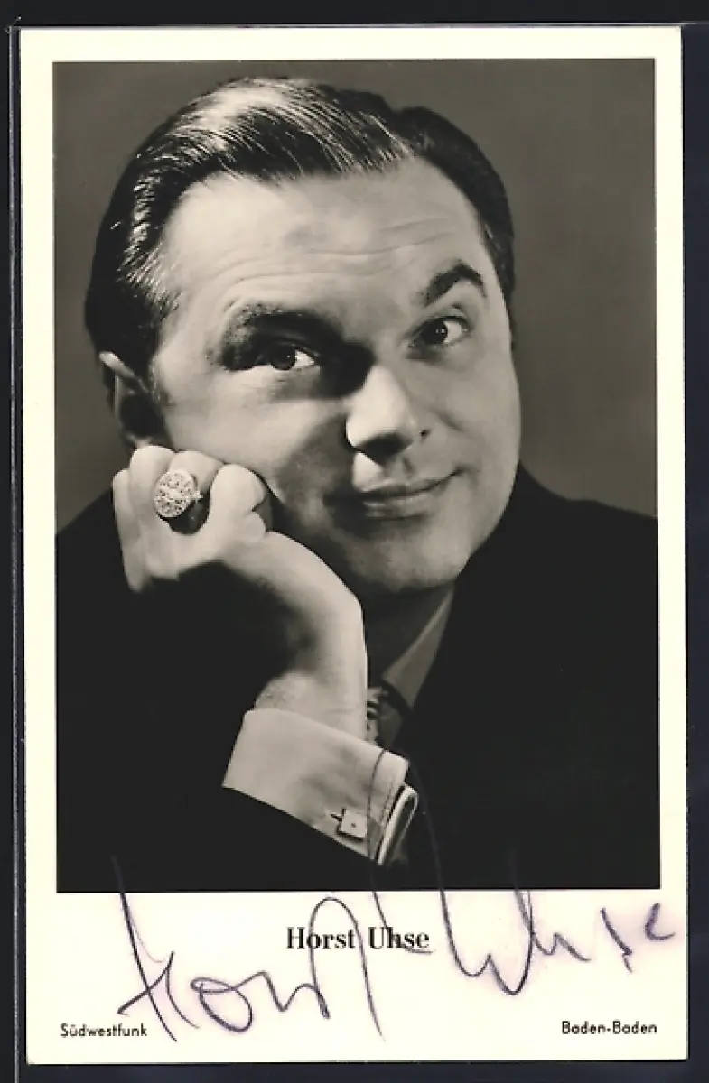 AK Schauspieler Horst Uhse den Kopf in die Hand gestützt, mit Autograph