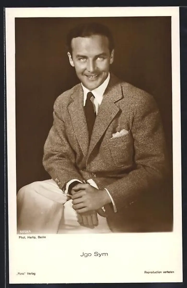 AK Schauspieler Igo Sym mit gekreuzten Beinen