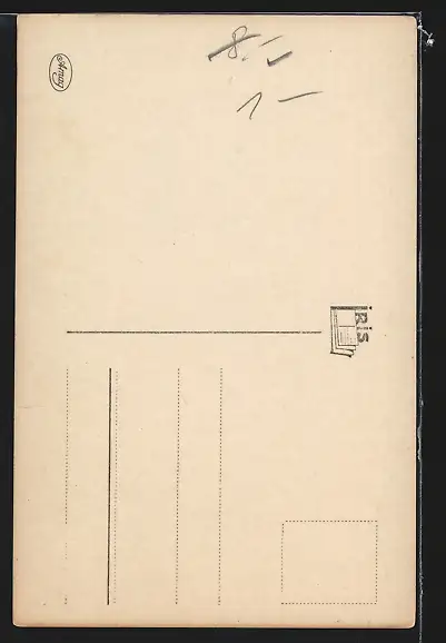 Personenbezogene Daten auf der Rückseite der Karte wurden durch blauen Textmarker unkenntlich gemacht. Die blauen Stellen sind auf die Vorderseite durchgeweicht und wirken sich negativ auf das Postkartenfoto aus