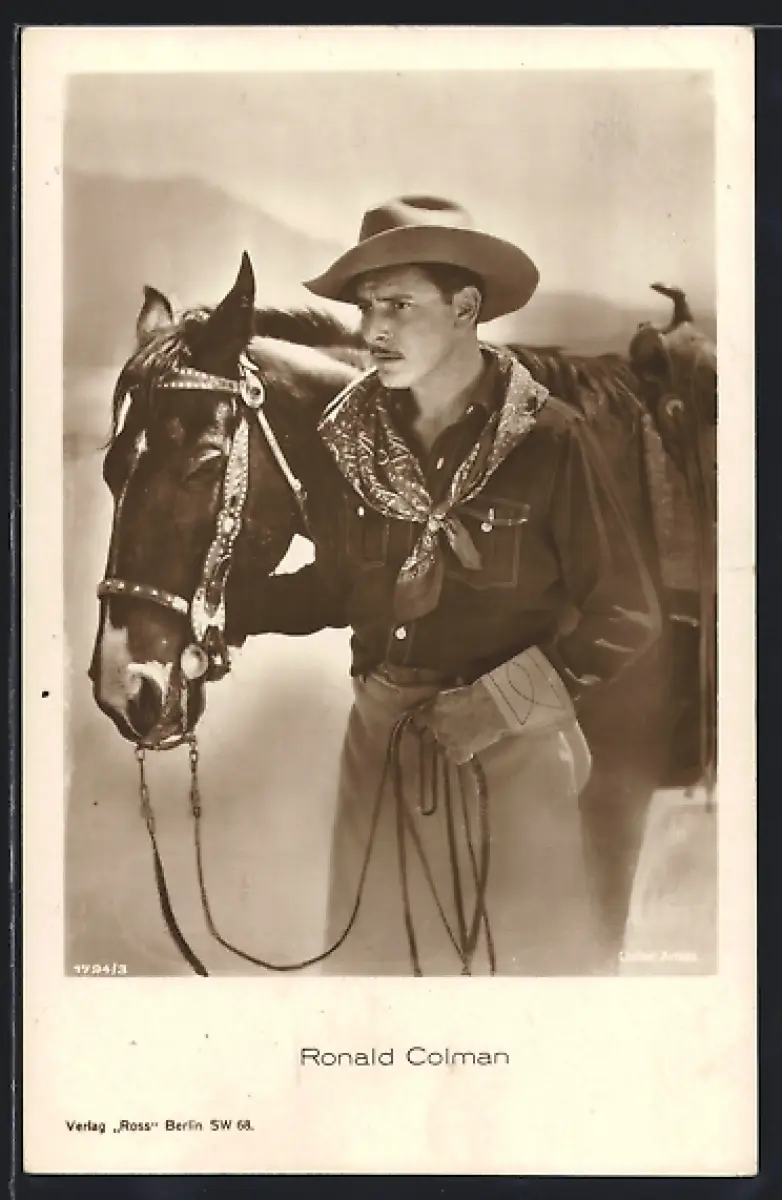 AK Schauspieler Ronald Colman als Cowboy mit Pferd