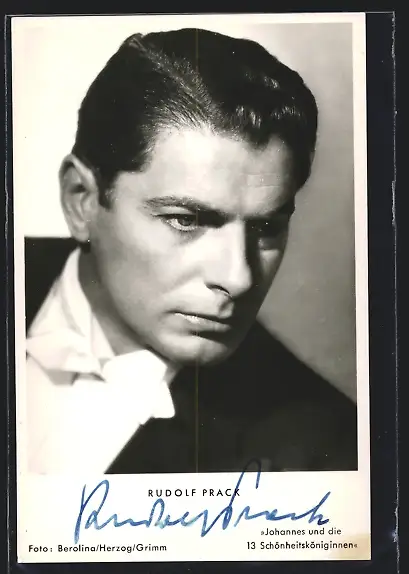 AK Schauspieler Rudolf Prack mit Fliege im Jackett, mit original Autograph