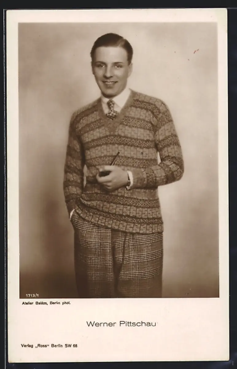 AK Schauspieler Werner Pittschau im Pullover mit Pfeife