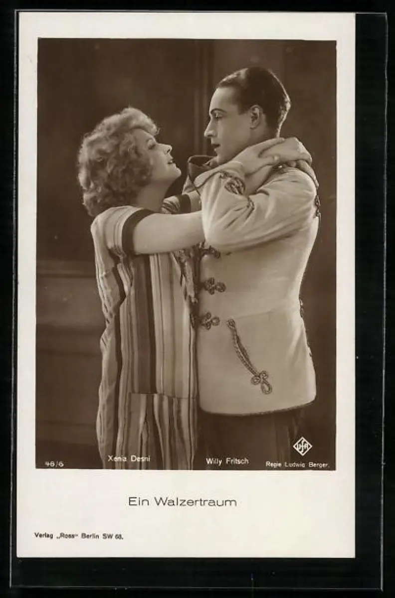 AK Schauspieler Willy Fritsch und Schauspielerin Xenia Desni in Ein Walzertraum, Filmszene