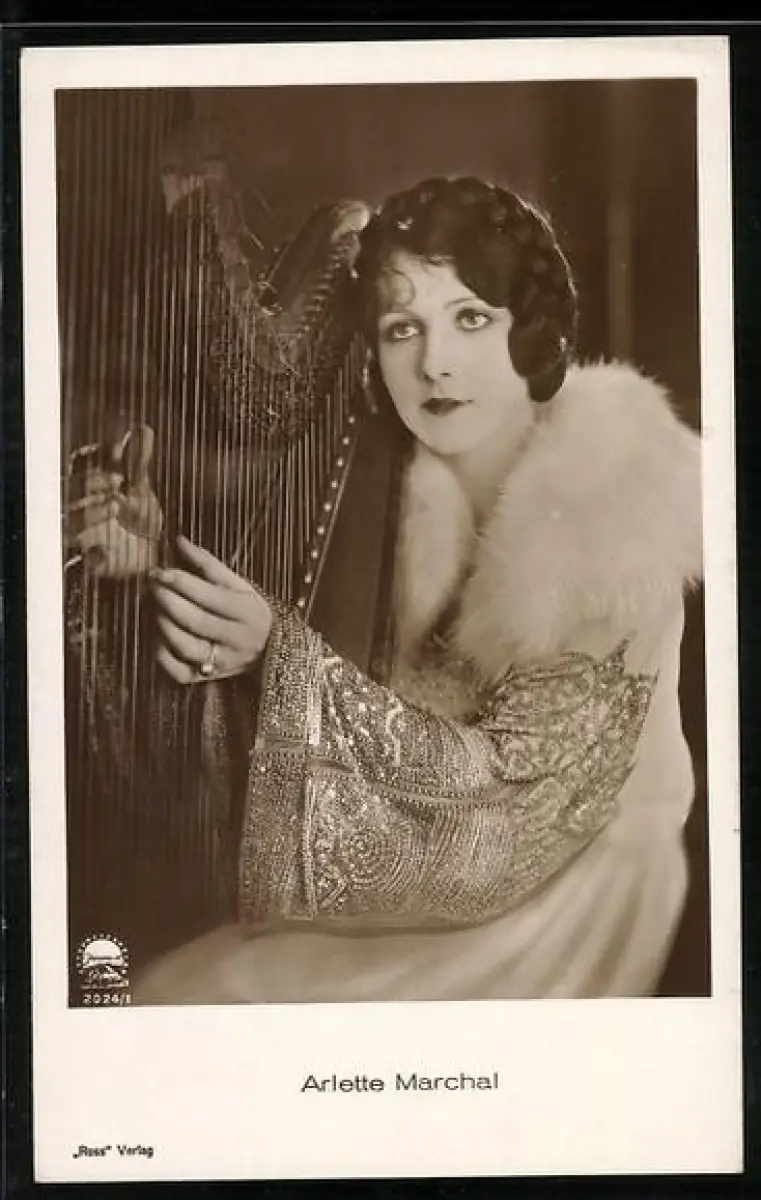 AK Schauspielerin Arlette Marchal spielt Harfe
