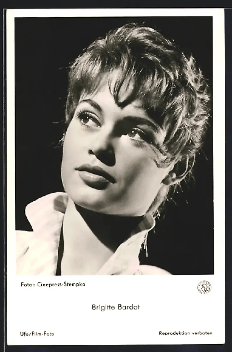 AK Schauspielerin Brigitte Bardot blickt nachdenklich in die Ferne