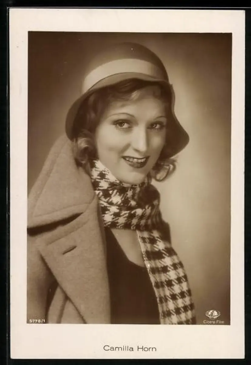 AK Schauspielerin Camilla Horn mit Mantel und Hut