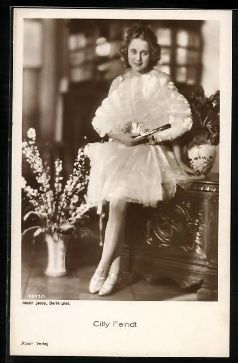 AK Schauspielerin Cilly Feindt lächelnd an Schrank lehnend