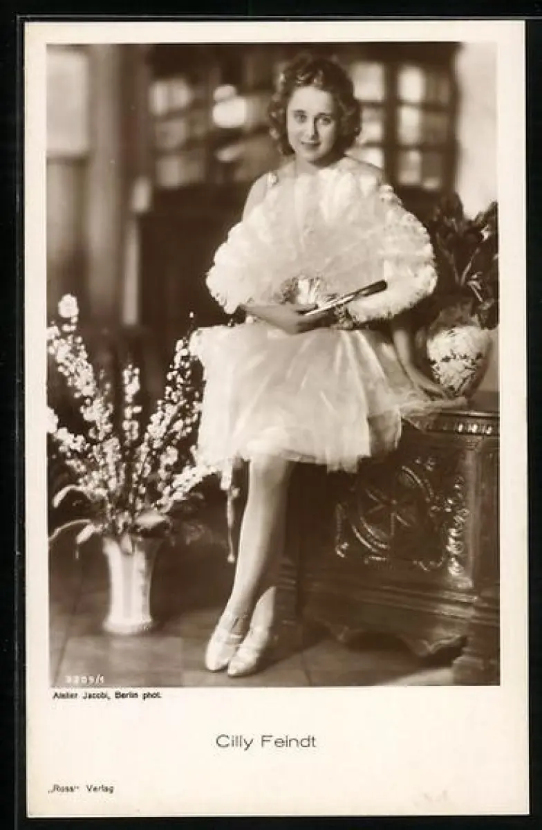 AK Schauspielerin Cilly Feindt lächelnd an Schrank lehnend