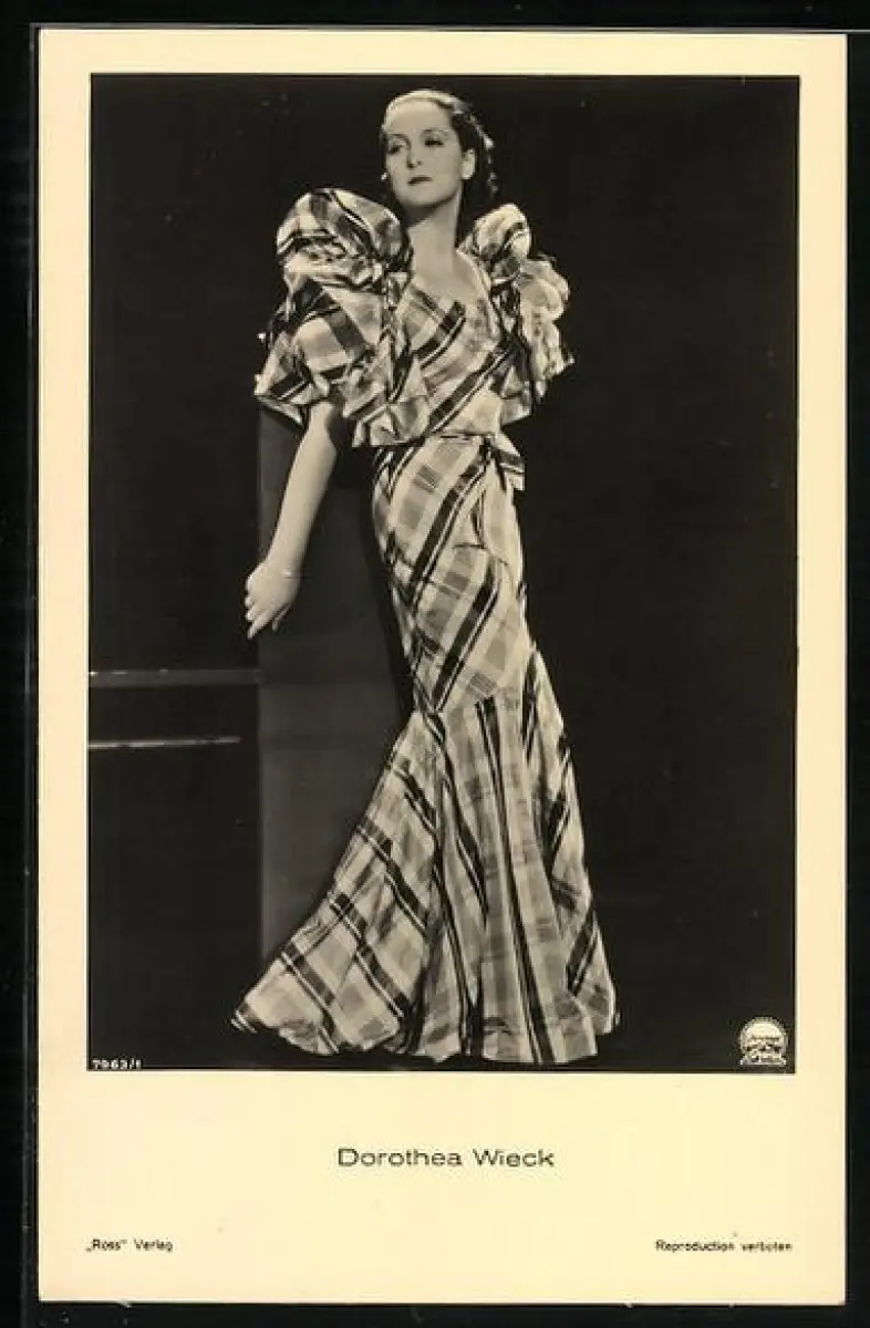 AK Schauspielerin Dorothea Wieck im karierten Kleid