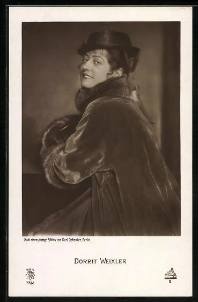 AK Schauspielerin Dorrit Weixler blickt lächelnd über die Schulter