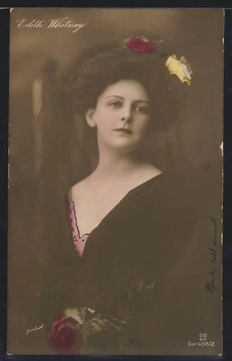 AK Schauspielerin Edith Whitney, elegant in dunkler Kleidung mit Hut