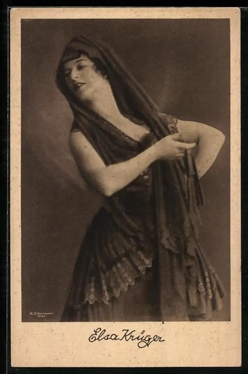 AK Schauspielerin Elsa Krüger in schwarzem Kleid, Elsa Krüger Zigarette