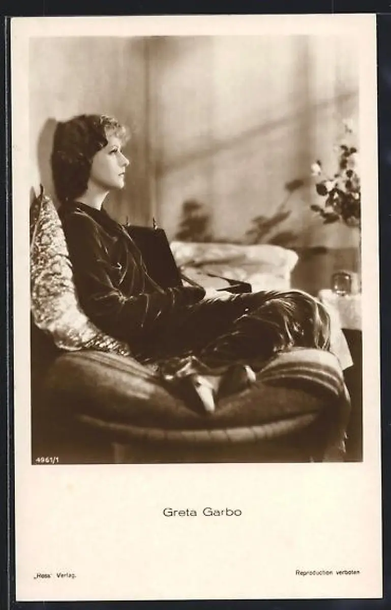 AK Schauspielerin Greta Garbo entspannt auf einem Sofa