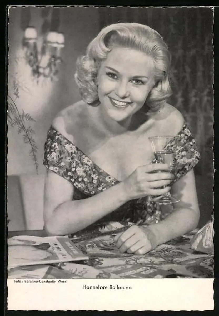 AK Schauspielerin Hannelore Bollmann mit Glas in der Hand
