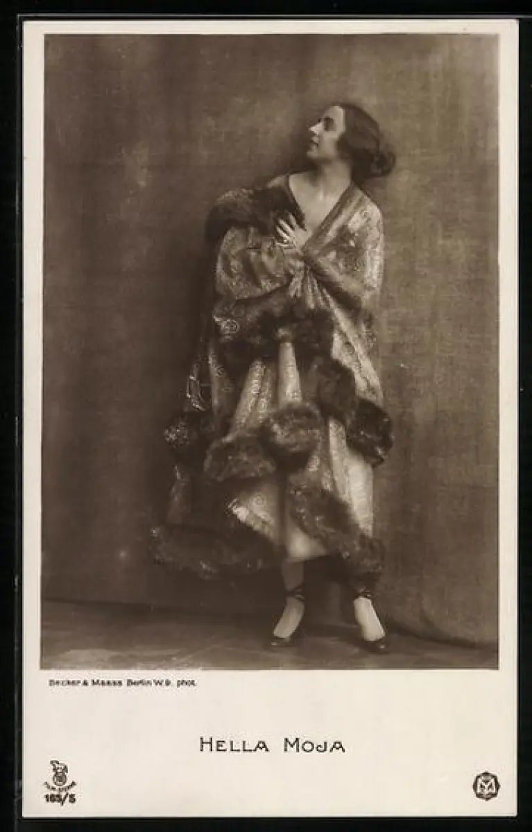 AK Schauspielerin Hella Moja im Mantel mit Pelzbesatz